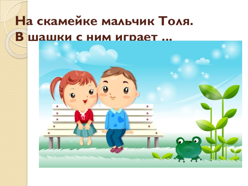 Слайд 2На скамейке мальчик Толя. В шашки с ним играет ...