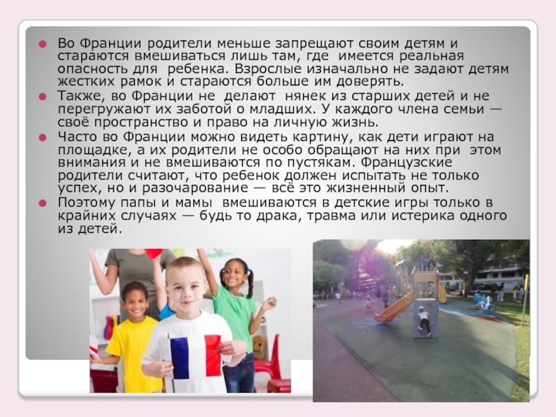 Слайд 16Во Франции родители меньше запрещают своим детям и стараются вмешиваться лишь