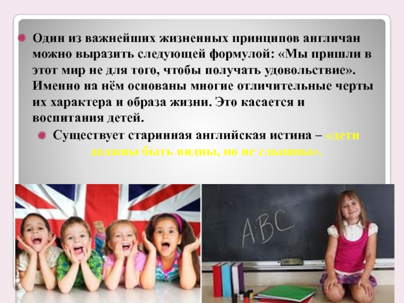 Слайд 25Один из важнейших жизненных принципов англичан можно выразить следующей формулой: «Мы