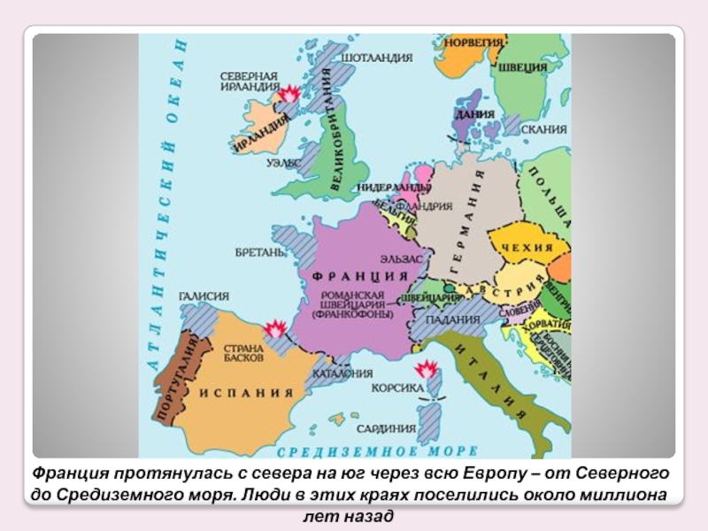 Слайд 4Франция протянулась с севера на юг через всю Европу – от