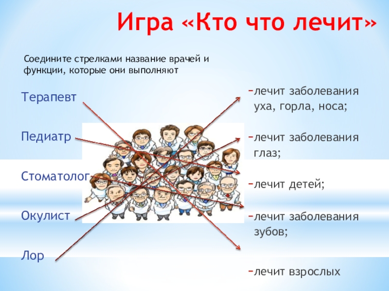 Соедините стрелками название врачей и функции, которые они выполняют