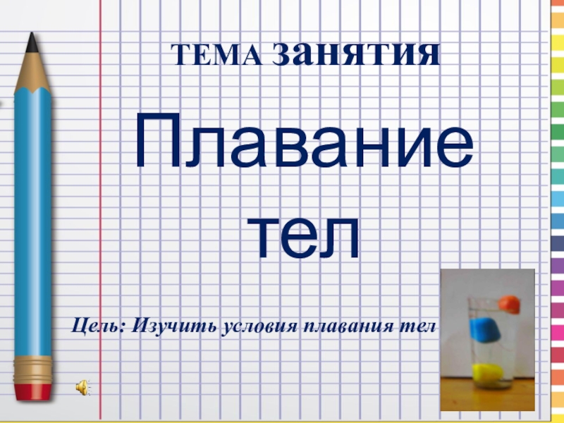 ТЕМА занятияПлавание телЦель: Изучить условия плавания тел