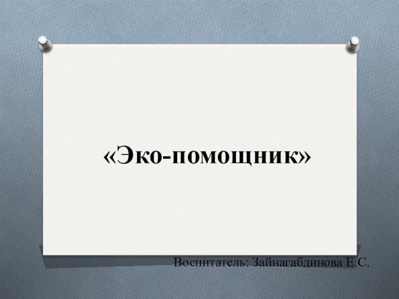 «Эко-помощник» Воспитатель: Зайнагабдинова Е.С.
