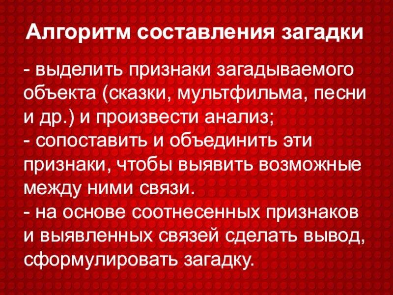 Алгоритм составления загадки