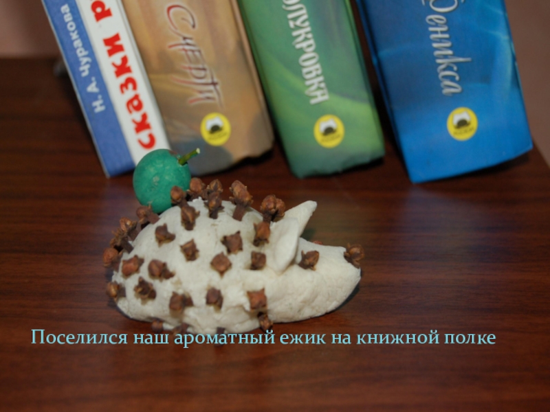 Слайд 19Поселился наш ароматный ежик на книжной полке