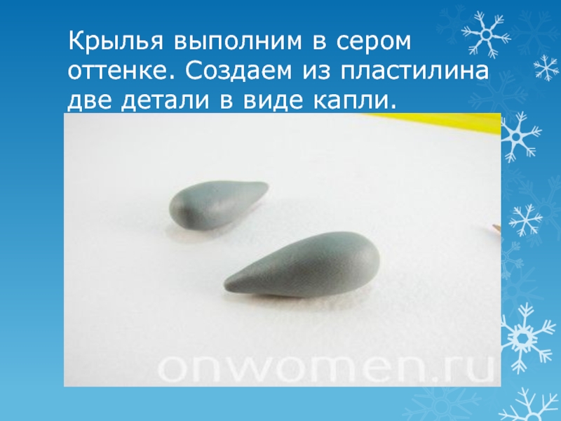 Слайд 10Крылья выполним в сером оттенке. Создаем из пластилина две детали в