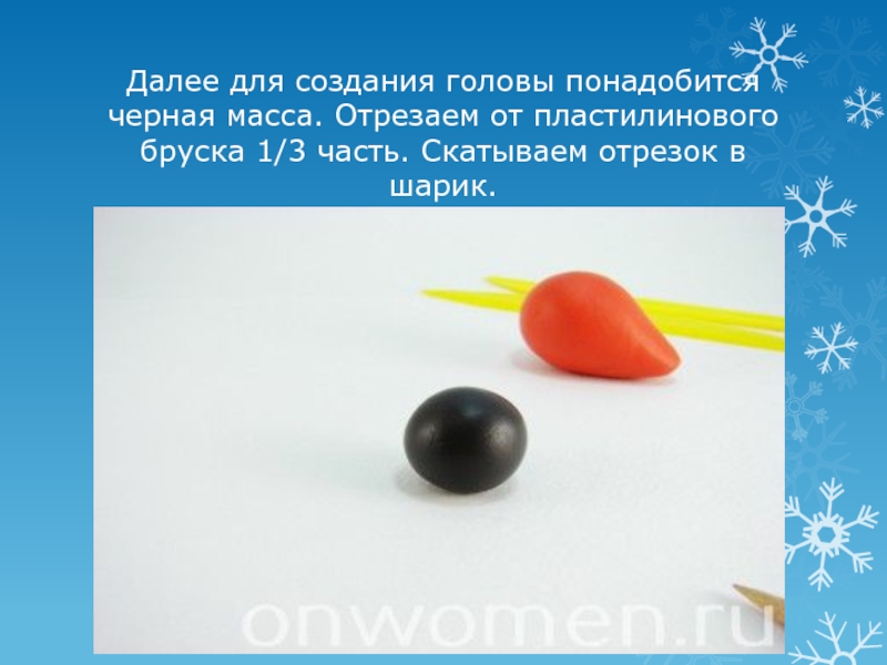 Слайд 6Далее для создания головы понадобится черная масса. Отрезаем от пластилинового бруска