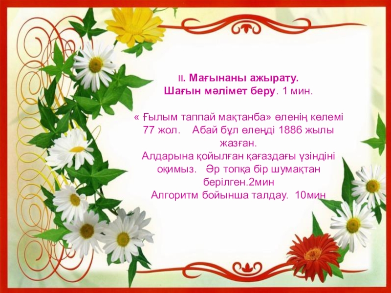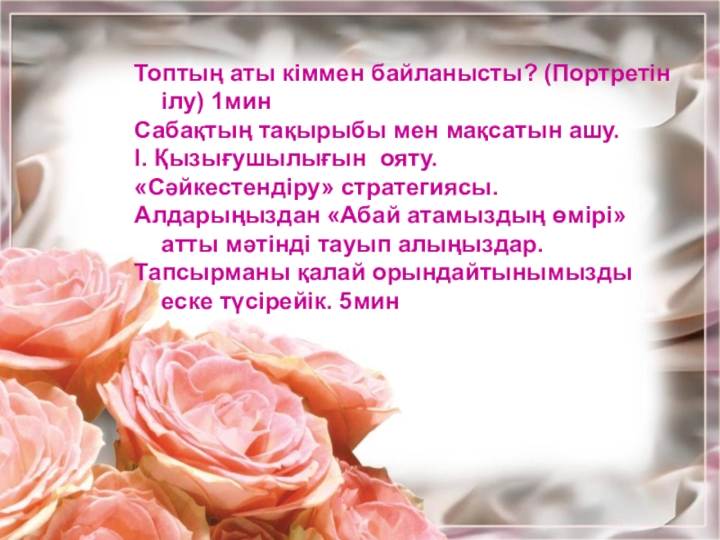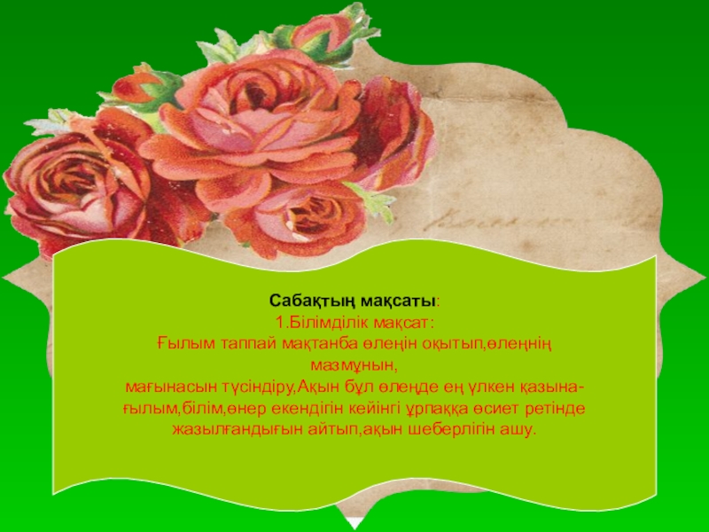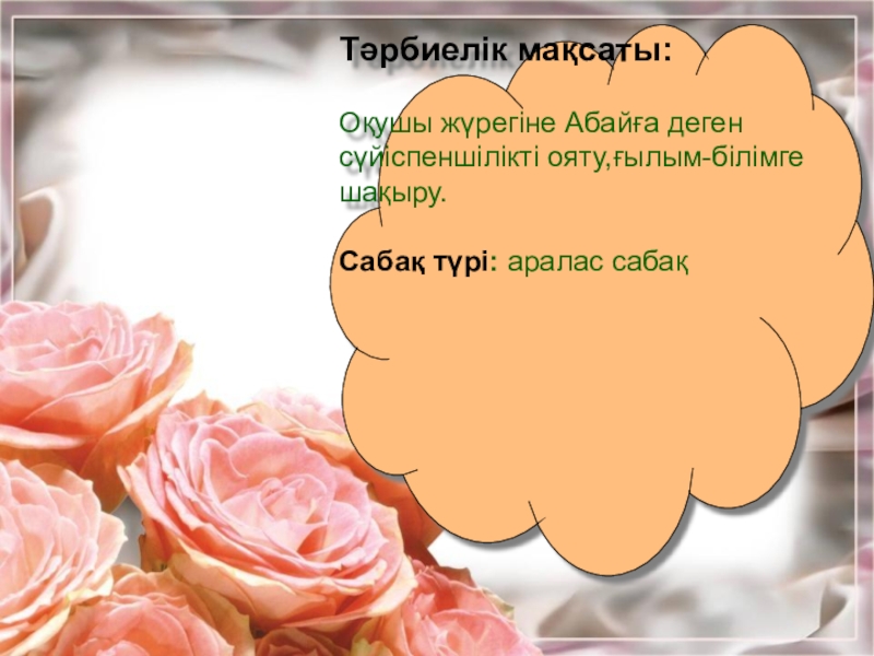 Оқушы жүрегіне Абайға деген сүйіспеншілікті ояту,ғылым-білімге шақыру.