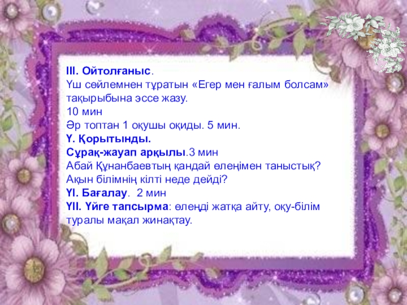 ІII. Ойтолғаныс.
