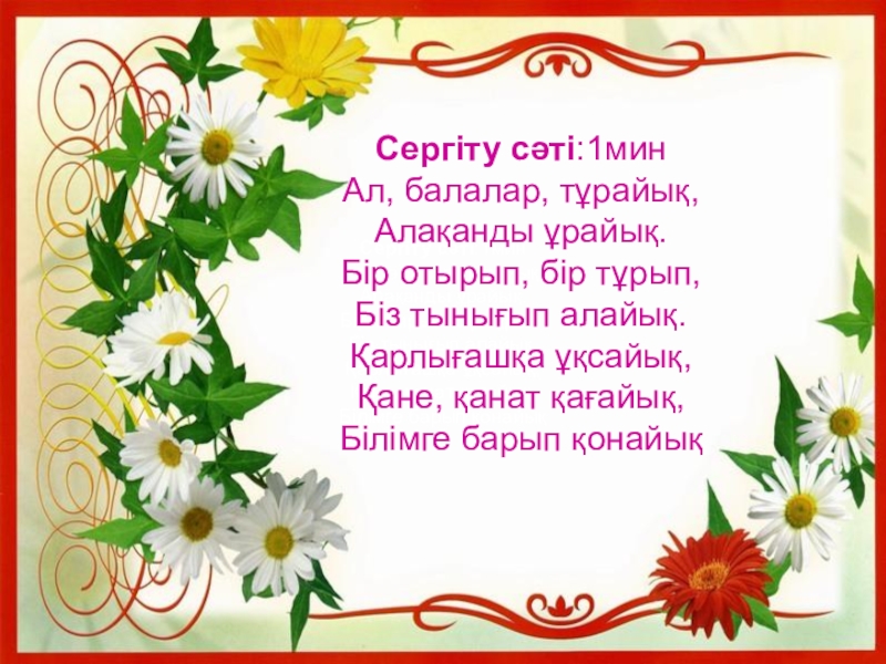 Сергіту сәті:1мин
