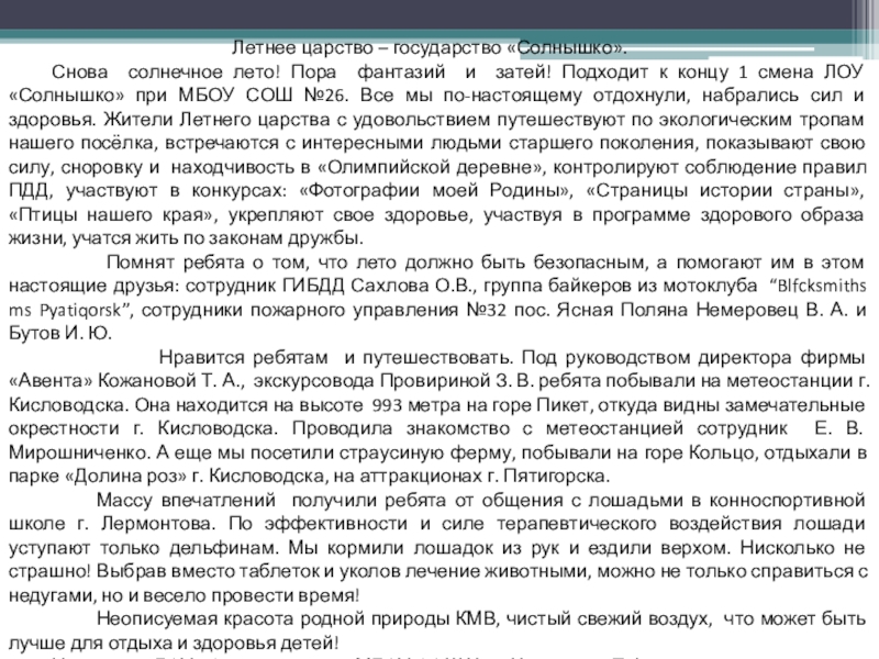 Взаимодействие ЛОУ «Солнышко» со службами:
