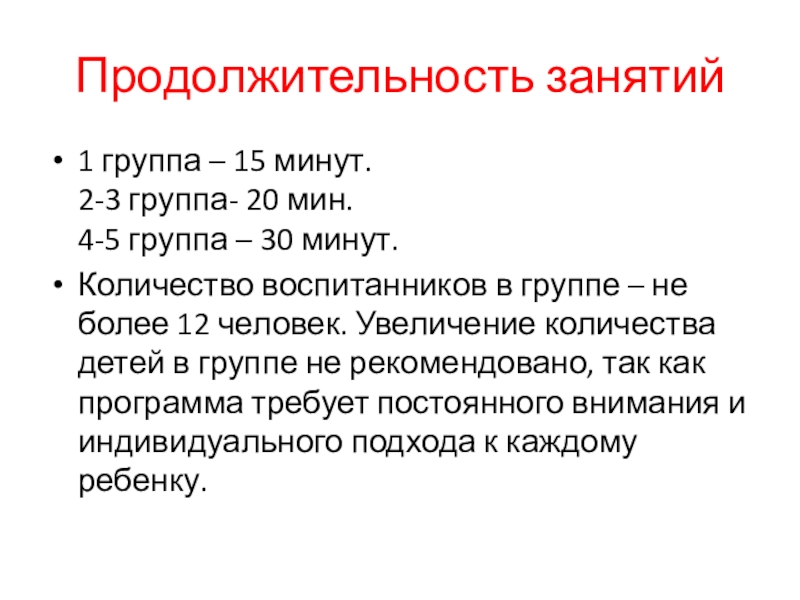 Слайд 11Продолжительность занятий