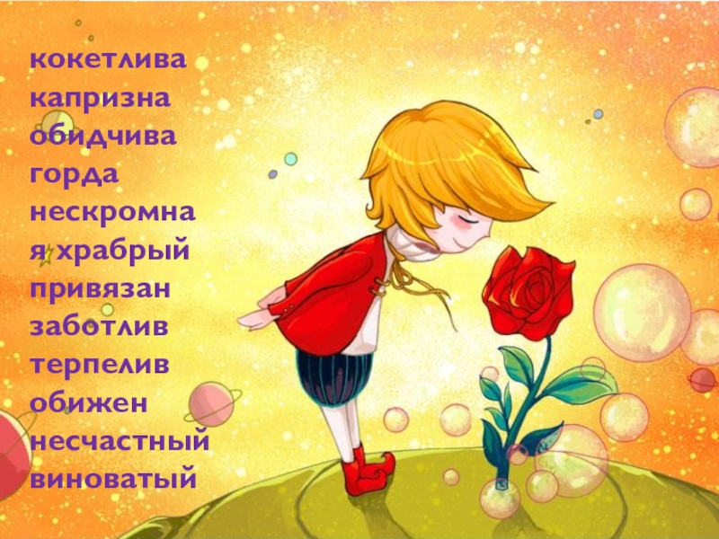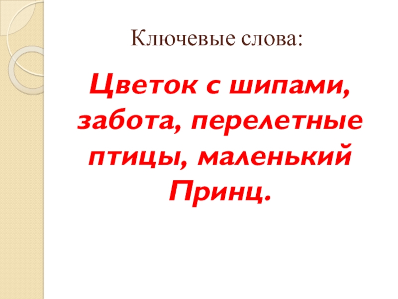 Ключевые слова:Цветок с шипами, забота, перелетные птицы, маленький Принц.