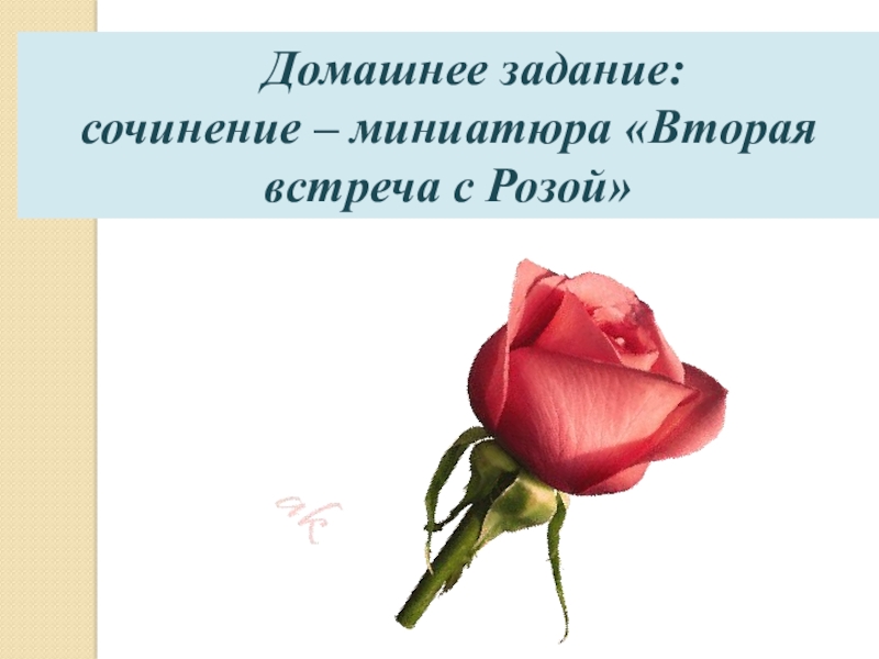 .    Домашнее задание:сочинение – миниатюра «Вторая встреча с Розой»