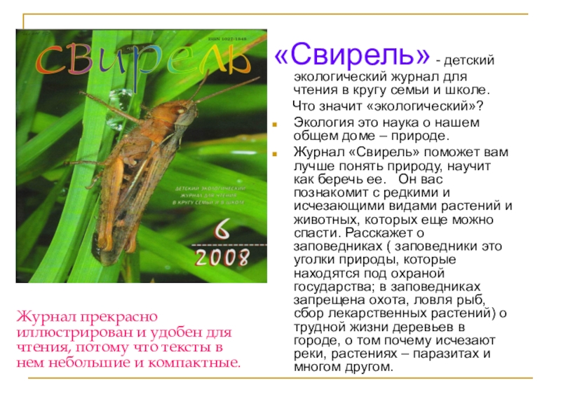 Журнал прекрасно иллюстрирован и удобен для чтения, потому что тексты в нем небольшие и компактные.