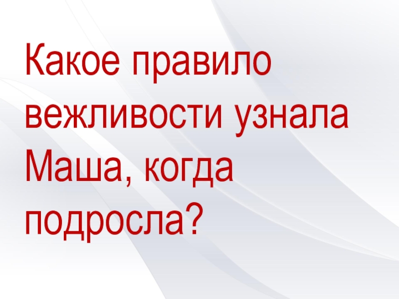 Слайд 4Какое правило вежливости узнала Маша, когда подросла?