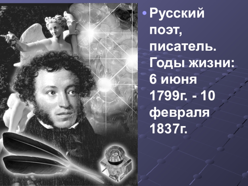Слайд 2Русский поэт, писатель. Годы жизни: 6 июня 1799г.