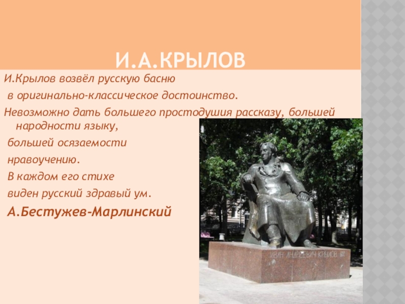 «Баснописец есть сын природы, предпочтительно пред всеми другими стихотворцами. Слог басен