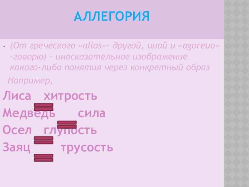 (От греческого «allos»- другой, иной и «agoreuo»-говорю) – иносказательное изображение какого-либо