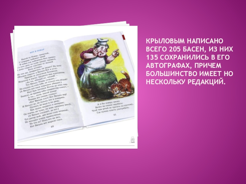 Слайд 9Крыловым написано всего 205 басен, из них 135 сохранились в его
