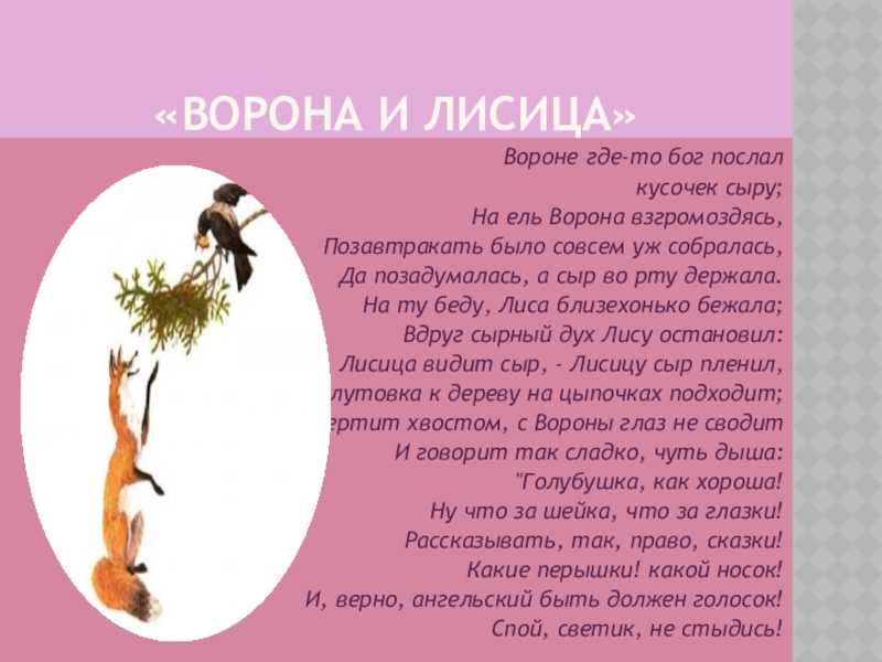 животных, где действующими лицами были традиционные персонажи (лиса, волк, заяц…), наделенные определенной чертой характера