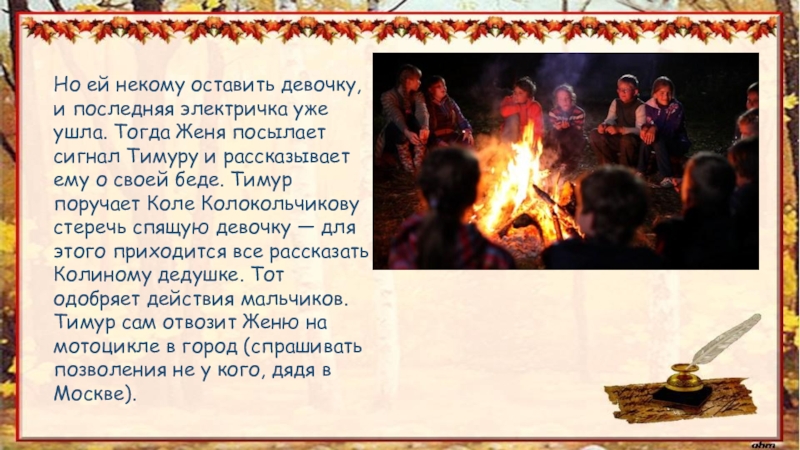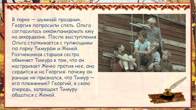 Слайд 12Ольга думает, что Тимур — хулиган, и запрещает Жене водиться с