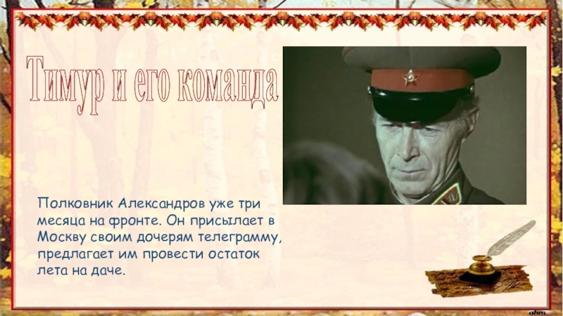 Слайд 6Полковник Александров уже три месяца на фронте. Он присылает в Москву