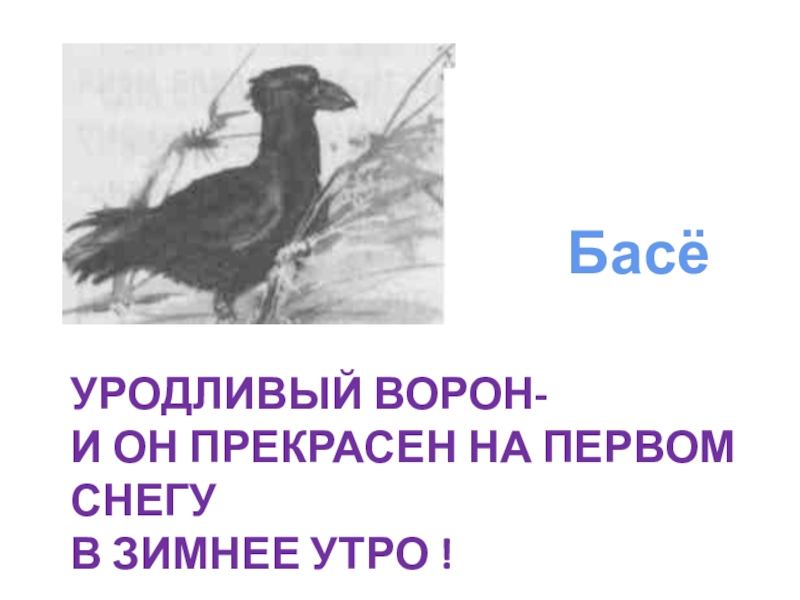 УРОДЛИВЫЙ ВОРОН-И ОН ПРЕКРАСЕН НА ПЕРВОМ СНЕГУВ ЗИМНЕЕ УТРО !Басё