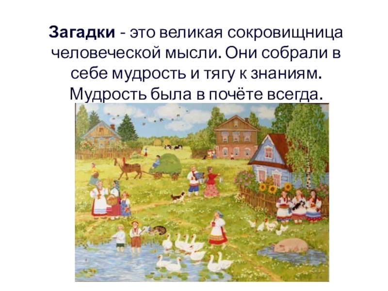Слайд 9Загадки - это великая сокровищница человеческой мысли. Они собрали в себе