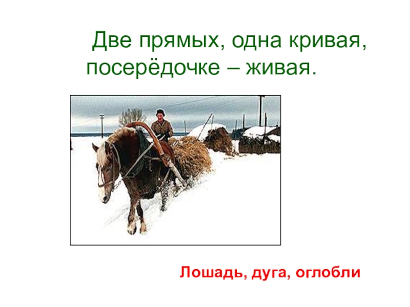 Слайд 13 Две прямых, одна кривая, посерёдочке – живая.