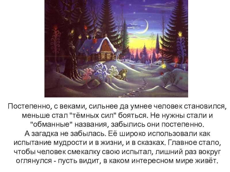 Слайд 7Постепенно, с веками, сильнее да умнее человек становился, меньше стал "тёмных