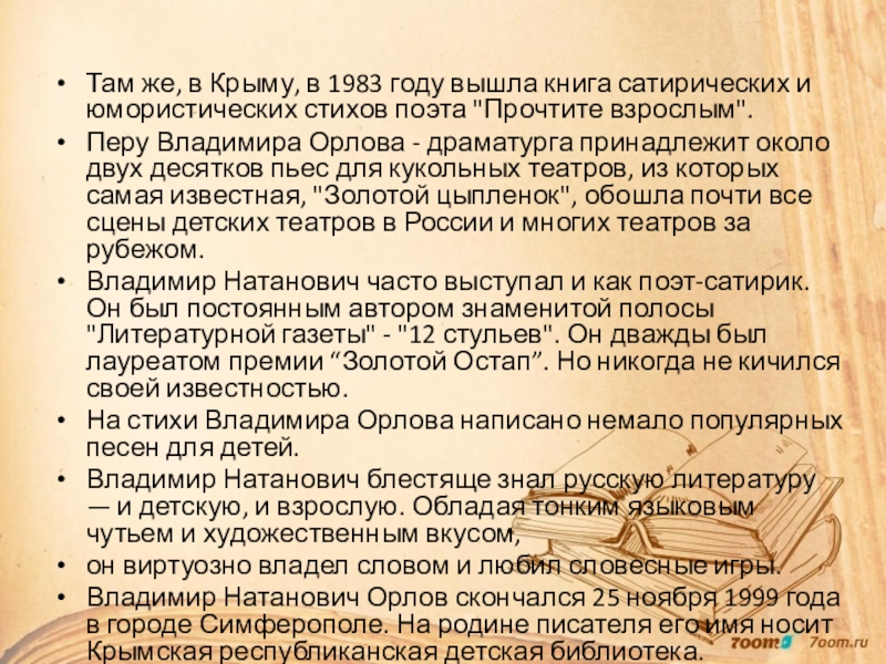 Многие стихи, вошедшие в первые книжки Владимира Орлова, давно уже стали классикой детской литературы.