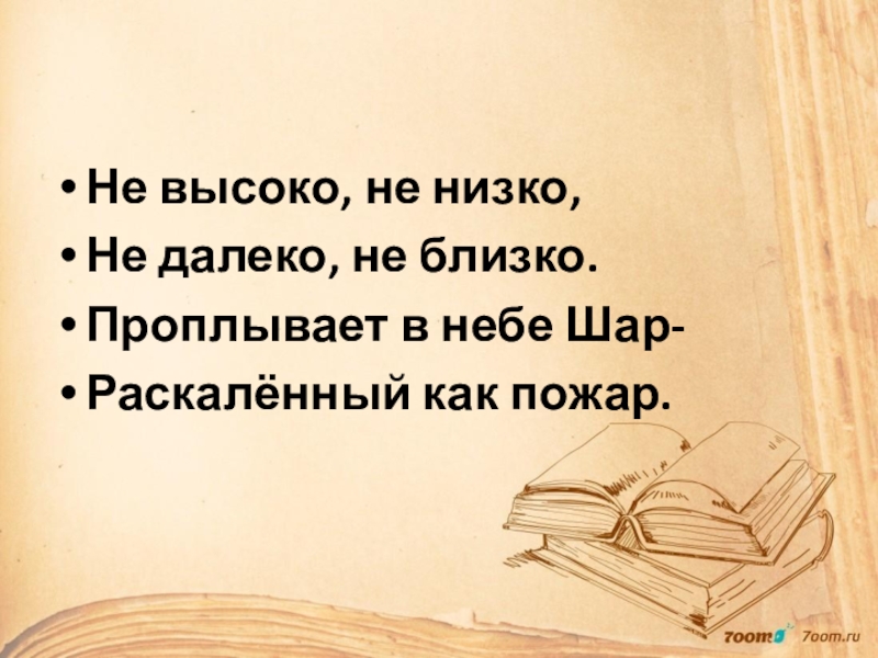 Слайд 2Не высоко, не низко,