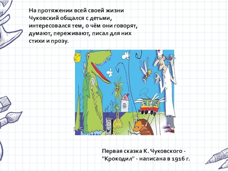 Первая сказка К. Чуковского - "Крокодил" - написана в 1916 г.