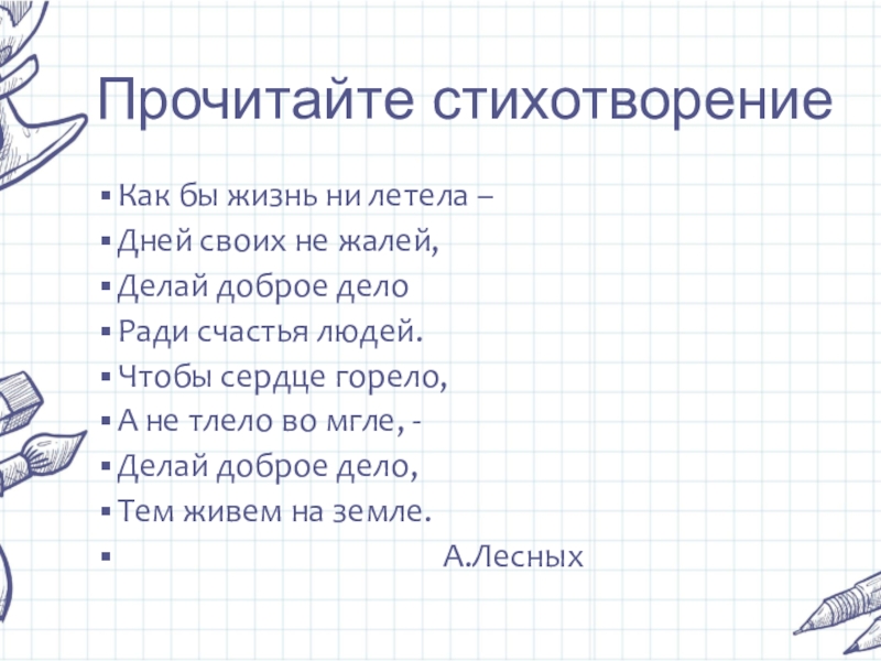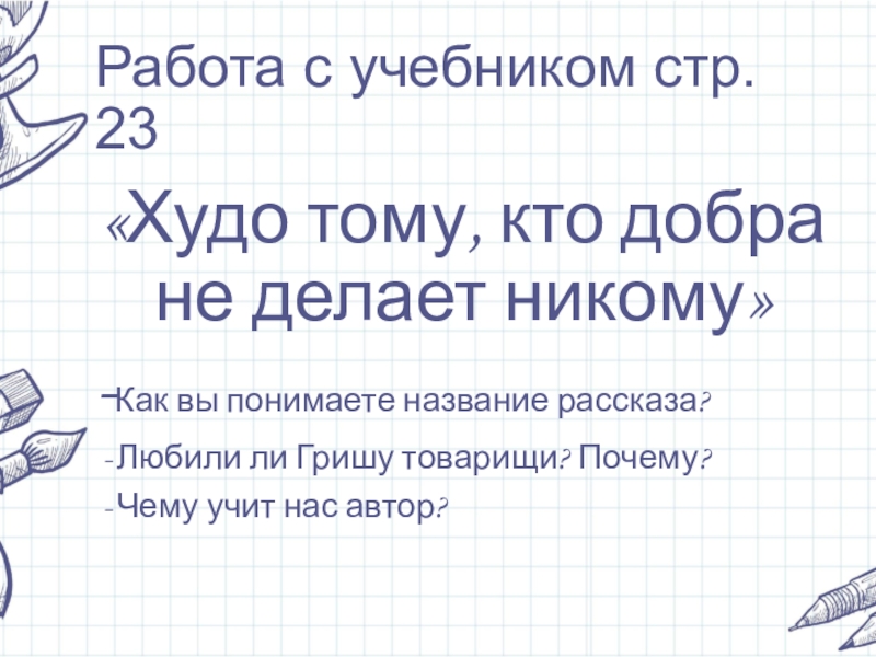 Это сайт презентаций, где можно хранить и обмениваться своими презентациями, докладами, проектами, шаблонами в формате PowerPoint с другими пользователями. Мы помогаем школьникам, студентам, учителям, преподавателям хранить и обмениваться учебными материалами.