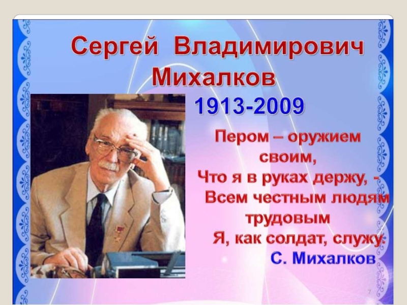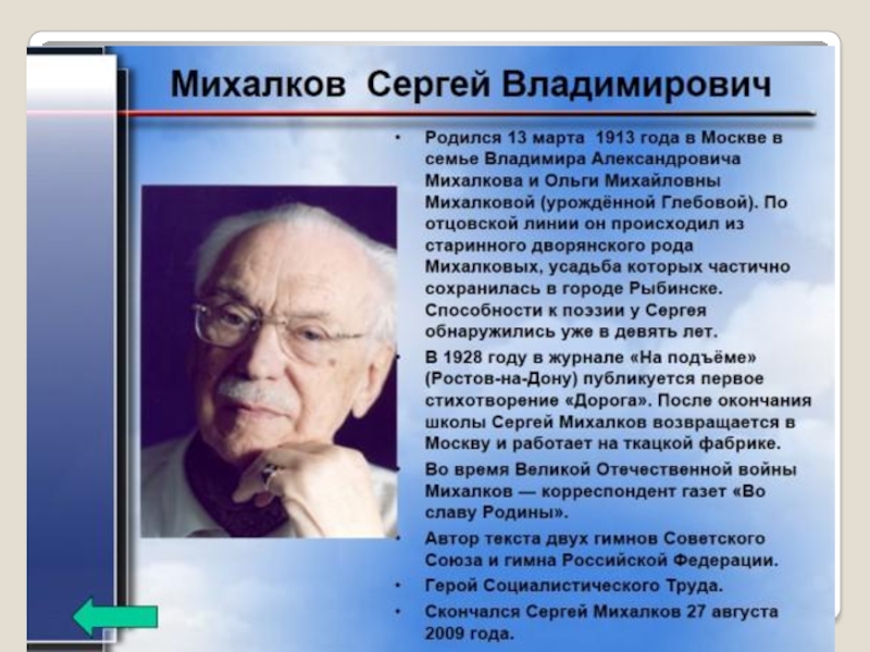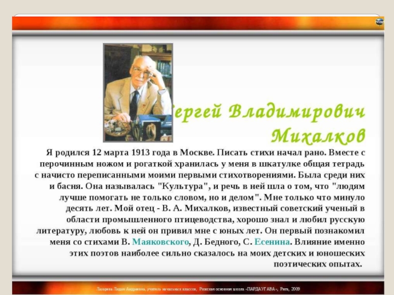 Сергей МихалковБлохина Зинаида Васильевнаучитель начальных классовМОУ «Узуновская СОШ»