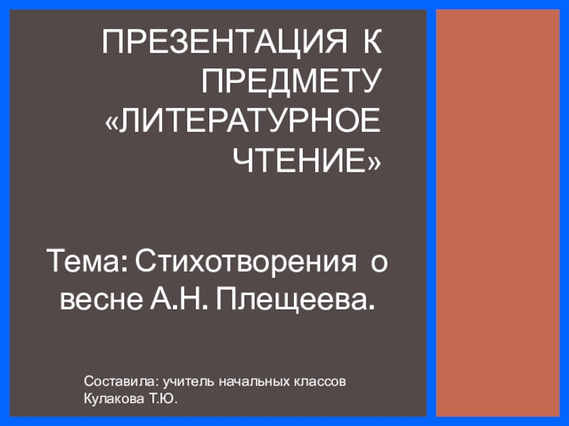 начальных классов Кулакова Т.Ю.