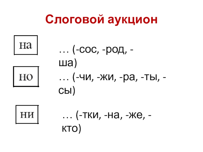 Слоговой аукцион… (-сос, -род, -ша)… (-чи, -жи, -ра, -ты, -сы)… (-тки, -на, -же, -кто)