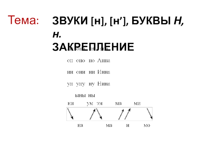 Тема: ЗВУКИ [н], [н’], БУКВЫ Н, н. ЗАКРЕПЛЕНИЕ