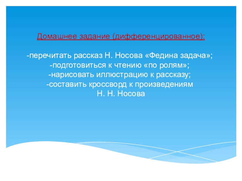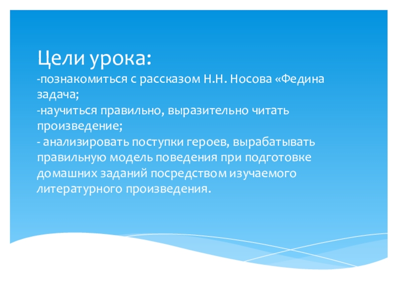 Тема урока «Н.Н. Носов «Федина задача»