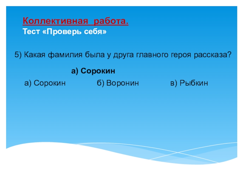 а) Сорокин б) Воронин в) Рыбкин