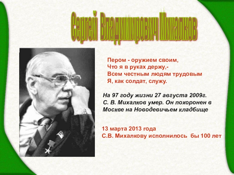 С. В. Михалков умер. Он похоронен в Москве на Новодевичьем кладбище