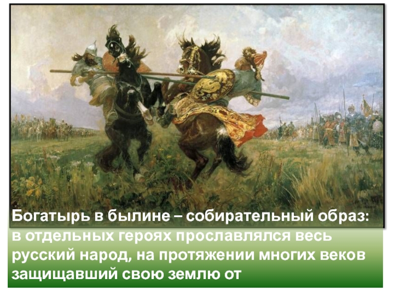 Слайд 6Богатырь в былине – собирательный образ: в отдельных героях прославлялся весь