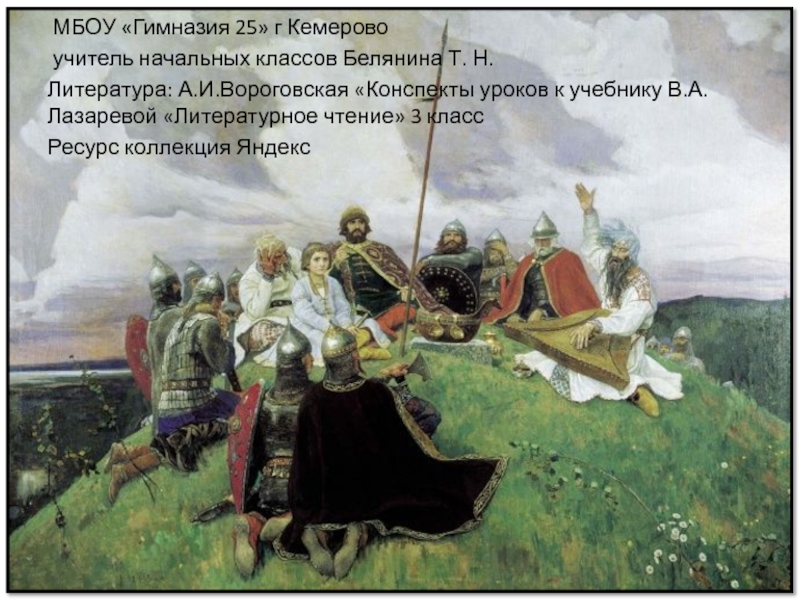 МБОУ «Гимназия 25» г Кемерово учитель начальных классов Белянина Т. Н. Литература: А.И.Вороговская «Конспекты уроков к