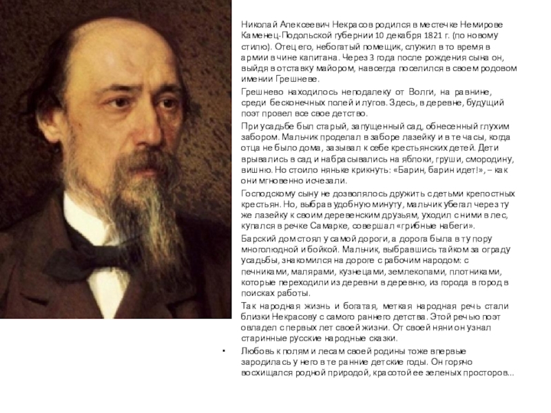 Слайд 3Николай Алексеевич Некрасов родился в местечке Немирове Каменец-Подольской губернии 10 декабря