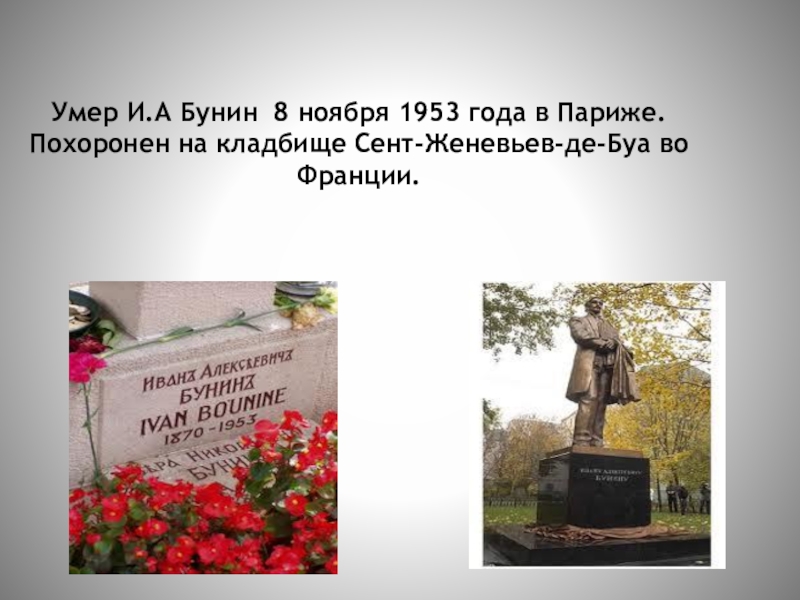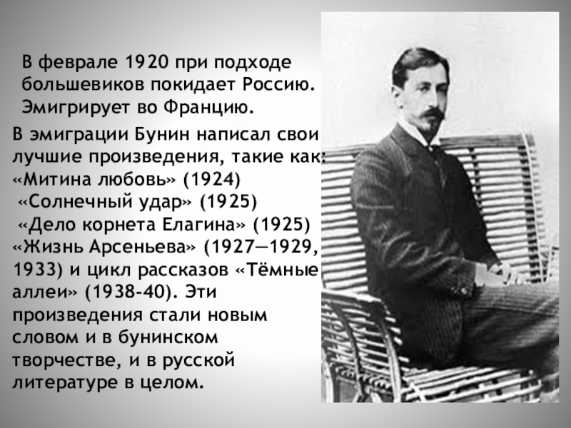 В эмиграции Бунин написал свои лучшие произведения, такие как: