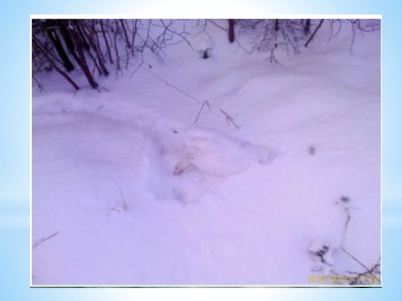 Слайд 12Вот столпились в кучу молодые осинки. Вокруг них много следов. Снег