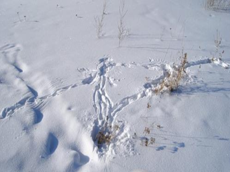 Идём дальше по белой равнине. Вот попалась какая-то стёжка – мелкие-мелкие следы. Стёжка вела к корням непролазного тальника. Кто же здесь скрывается?