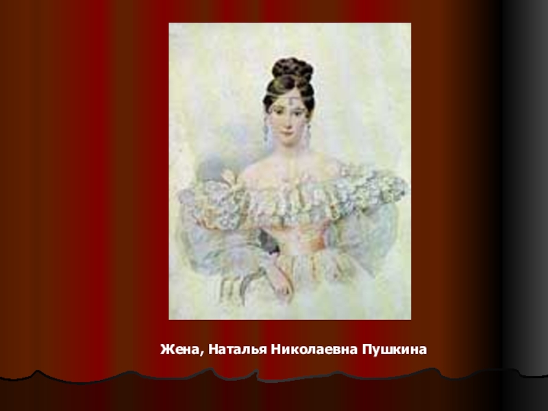 Слайд 9Жена, Наталья Николаевна Пушкина