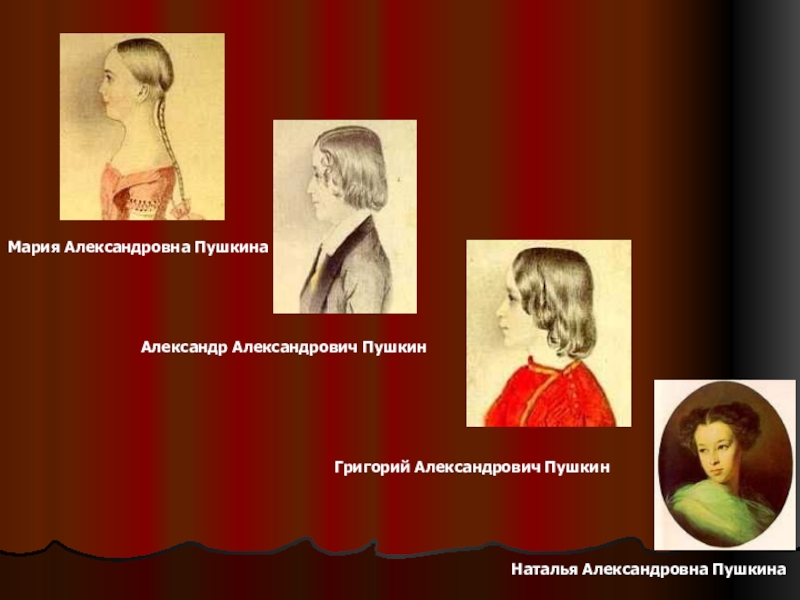 Мария Александровна Пушкина Александр Александрович Пушкин Григорий Александрович Пушкин Наталья Александровна Пушкина